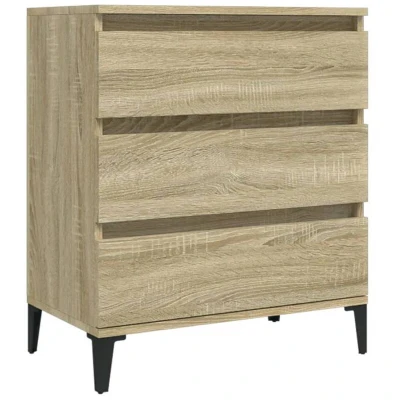 General description This sideboard, featuring a minimalist design, makes a practical as well as a highly decorative addition to your home. The engineered wood is of exceptional quality with a smooth surface, offering strength, stability, and resistance to moisture. Equipped with 3 drawers, the cabinet provides ample storage space for keeping your various daily essentials well organized and within easy reach. The top of the cupboard is perfect for displaying decorative items, photo albums, or small plants. The clean lines and sleek design allow the sideboard to blend seamlessly into your interior. Technical specifications Colour: Sonoma oak Material: Engineered wood, metal Dimensions: 60 x 35 x 70 cm (W x D x H) Other information Warning: To prevent overturning, this product must be used with the wall attachment device provided. Each product comes with an assembly manual in the box for easy assembly.