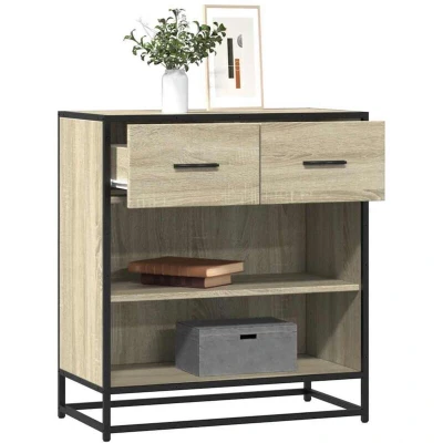 ManoManoGeneral description This modern sideboard, featuring a timeless look, is an excellent addition to your home. It combines functionality with style, making it suitable for various settings. Technical specifications Colour: Sonoma oak Material: Engineered wood, metal Dimensions: 68 x 35 x 76 cm (W x D x H) Maximum weight capacity (total): 50 kg Assembly required: Yes Installation To prevent tipping, this product must be used with the provided wall attachment device. Usage This side cabinet can be used as a bathroom cabinet, kitchen cupboard, or as an elegant storage solution in bedrooms, powder rooms, entryways, corridors, offices, dining rooms, and other living areas. Other information