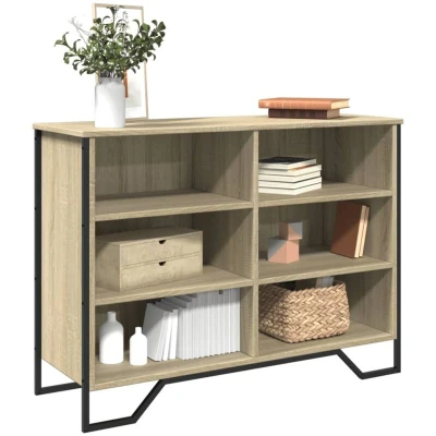 ManoManoGeneral description This modern sideboard, featuring a timeless look, is an excellent addition to your home. It is designed with a smooth surface and offers strength, stability, and resistance to moisture. Technical specifications Colour: Sonoma oak Material: Engineered wood, metal Overall dimensions: 101 x 35.5 x 74.5 cm (L x W x H) Assembly required: Yes Usage Ample storage space for keeping various daily essentials organized and within easy reach. The stable top is perfect for displaying decorative items, picture frames, and potted plants. Practical doors keep essentials free from dust, and the handles make it easy to open the storage cabinet. Other information Warning: To prevent it from tipping over, this product must be used with the provided wall attachment device.