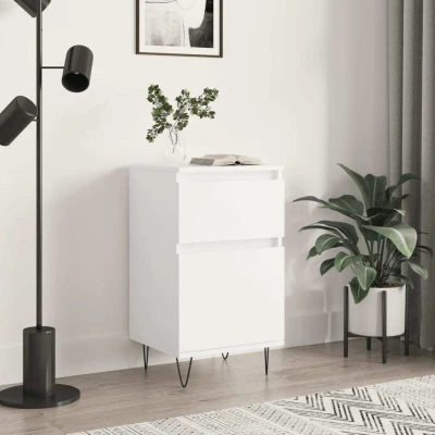 ManoManoGeneral description This trendy sideboard, featuring a timeless look, is an excellent addition to your home. It offers ample storage space for keeping your daily essentials organized and within easy reach, while the top surface is perfect for displaying decorative items, picture frames, and potted plants. Technical specifications Colour: White Material: Engineered wood, iron Dimensions: 40 x 35 x 70 cm (W x D x H) Assembly required: Yes Installation To prevent it from being overturned, this product must be used with the provided wall attachment device. Other information