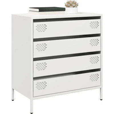 General description This classic sideboard is a decorative and practical addition to your home and office. It features a robust and stable structure made from cold-rolled steel, which offers a smoother surface, higher strength, and precision. The metal feet add a calm style to your interior while ensuring stability. With ample storage space provided by four drawers, this cabinet helps keep your daily essentials organized and within easy reach. Its smooth surface makes it easy to clean with a damp cloth, requiring minimal maintenance. This versatile side cabinet is suitable for various settings, including bedrooms, living rooms, and hallways. Technical specifications Colour: White Material: Cold-rolled steel Overall dimensions: 68 x 39 x 73.5 cm (W x D x H) Dimensions of drawer: 64.5 x 29 x 12.5 cm (W x D x H) Number of drawers: 4 Assembly required: Yes Other information Warning: To prevent tipping, this product must be used with the provided wall attachment device. Images: