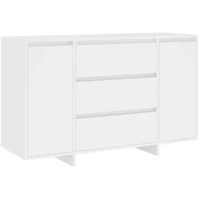 General description This classic sideboard features a simple and modern design, making it a perfect addition to your room decor. Equipped with 2 doors and 3 drawers, this side cabinet provides ample storage space to keep your various items neatly organized and within reach. The sturdy top is ideal for placing decorative items, such as photo frames and potted plants. Additionally, this cabinet is easy to clean with a damp cloth. Technical specifications Colour: White Material: Engineered wood Dimensions: 120 x 41 x 75 cm (L x W x H) Assembly required: Yes WARNING: In order to prevent overturning, this product must be used with the wall attachment device provided. Other information