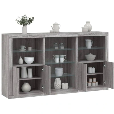 vidaXL Sideboard with Adjustable RGB LED Lights and Ample Storage Space Grey Sonoma Engineered Wood Cabinet for Living Room or Lounge Area