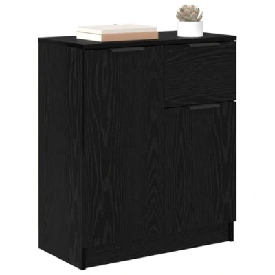 ManoManoGeneral description This Modern Engineered Wood Sideboard brings a touch of timeless class to any living or dining room. With its rustic looks and modern flair, this sideboard features a sturdy rectangular shape that fits well with different decor styles while providing ample storage for your essentials. Technical specifications Colour: Black oak Material: Engineered wood Overall dimensions: 60 x 30 x 70 cm (L x W x H) With drawer With 2 doors Assembly required: Yes EAN: 8721288905697 SKU: 880775 Brand: vidaXL Usage Ideal for storing utensils, dishes, or work items, keeping your living area tidy and clutter-free. Easy access to stored items with classic drawer pulls and long bar handles. Other information