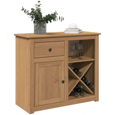 ManoManoGeneral description This wooden sideboard is perfect for those short on space but in need of additional storage. Made from solid pine wood, it features a straight grain and rustic knots, providing both durability and aesthetic appeal. The sideboard includes a drawer, compartments, and a wine rack, making it a versatile addition to any room, whether as a buffet, kitchen sideboard, or living room cabinet. Technical specifications Material: Solid pine wood with a honey wax finish, engineered wood Dimensions: 93 x 40 x 80 cm (W x D x H) Assembly required: Yes SKU: 4016386 Other information Warning: To prevent tipping, this product must be used with the provided wall attachment device.