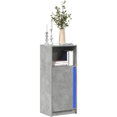 ManoManoGeneral description Decorate your room with this modern sideboard featuring LED lights that easily blends with any furniture style. The sideboard is designed with a contemporary look and offers ample storage space for your everyday items while enhancing the trendy appeal of your home. Technical specifications Colour: Concrete grey Material: Engineered wood, glass Overall dimensions: 42.5 x 34 x 100 cm (L x W x H) Maximum load capacity (total): 50 kg Maximum load capacity (laminate): 50 kg With LED lights Assembly required: Yes Compatibility and accessories USB connector (requires a certified 5V USB power source, not included) Installation Installation should be carried out according to the provided instructions to avoid safety risks. A wall attachment device is included; suitable fixings for your wall type must be sourced separately. Check for electrical wires or plumbing inside the wall before drilling. Engage a qualified tradesperson if unsure about installation. Usage This