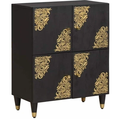 ManoManoThis modern sideboard is a versatile storage solution that beautifully complements your living room with its subtle elegance and functionality. Featuring clean lines and a gold screen-printed design, it stands out as a centerpiece while providing ample storage for various essentials in a stylish manner. The rectangle shape fits effortlessly in any room, bringing both utility and a sophisticated touch to your living space. Materials: Constructed from solid mango wood and engineered wood, this sideboard offers excellent durability and a striking visual blend of natural wooden textures. Mango wood is known for its strength and resilience, ensuring that this piece remains a dependable part of your home for years to come. Included Components: The sideboard features hinge doors for easy access to storage compartments, making organization a breeze. Attractive brass knobs not only provide a sturdy way to open the doors but add an elegant touch with their lustrous gold finish, seamlessly tying