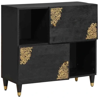 vidaXL Sideboard with Shelf Black 80 x 33 75 cm Solid Mango Wood