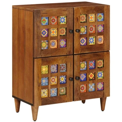 vidaXL Sideboard with Storage Walnut 60 x 33 75 cm Solid Mango Wood
