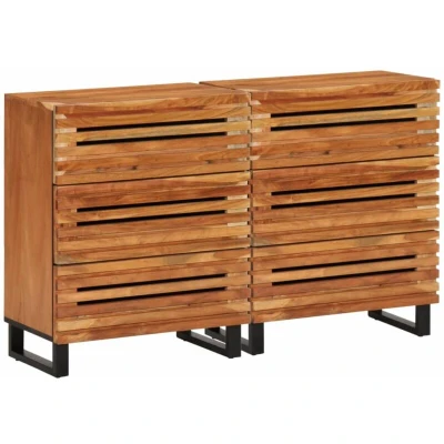 VidaXLThese sturdy wooden sideboards with an industrial style make a timeless addition to your living room or bedroom. Robust and stable frame: Steel is strong, stable, and durable, making it an ideal choice for a wide range of applications, from furniture manufacturing to construction.Durable material: Solid acacia wood is a beautiful natural material. Acacia wood is a tropical hardwood, which is dense, sturdy, and durable.Ample storage space: The sideboard cabinet has 3 drawers, which provides ample storage space for keeping your various daily essentials well-organised and within easy reach.Easy to clean: The cupboard is easy to clean with a damp cloth and requires less maintenance. Warning:To prevent it from tipping over, this product must be used with the provided wall attachment device. Good to know:Each item is unique with variations in colours and grains. The delivery is random, ensuring the exclusivity and individuality of your product.