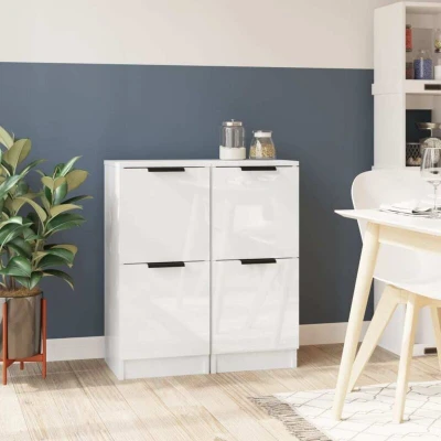 ManoManoGeneral description Featuring minimalist charm, these sideboards are designed to meet various requirements and serve as an ideal complement to your room. The engineered wood construction ensures exceptional quality with a smooth surface, providing strength, stability, and moisture resistance. Technical specifications Colour: High gloss white Material: Engineered wood Dimensions (each): 30 x 30 x 70 cm (W x D x H) Delivery contains: 2 x Sideboard SKU: 811182 Installation The doors of the side cabinet can be installed on the left or right according to your needs. Each product comes with an assembly manual in the box for easy assembly. Usage The sideboard cabinet provides ample storage space for knick-knacks, magazines, books, DVDs, and multimedia devices. It can be used as a storage cabinet for books and collections, a side table for your living room, or a bedside cabinet for your bedroom. The sturdy tabletop is ideal for displaying decorative objects, photo frames, or potted plants.