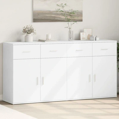 These sturdy sideboards are designed to be a focal point of your room with a trendy yet practical design. Durable material: The engineered wood is of exceptional quality with smooth surface and also features strength, stability and resistance to moisture. Made of engineered wood, the storage cabinet is easy to clean with a damp cloth.Ample storage space: This sideboard offers handy storage space for keeping your magazines, books, remote controls and other small items well-organised and within reach.Wide application: This sideboard's top provides more space for placing items, suitable for mobile phones, books, lamps, etc. Warning:To prevent it from tipping over, this product must be used with the wall attachment device (not provided).
