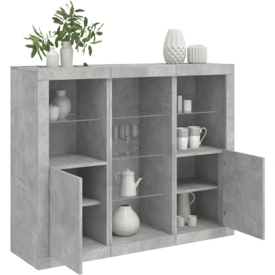 Vidaxl Sideboards with led Lights 3 pcs Concrete Grey Engineered Wood