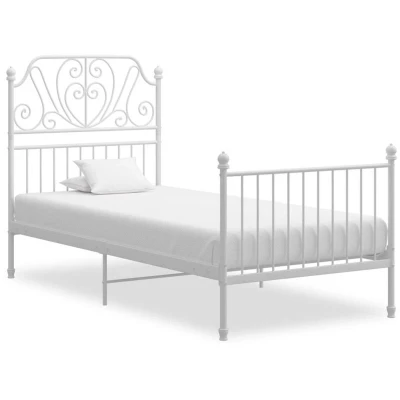 vidaXL Single Metal Bed Frame White Powder coated Finish Modern Bedroom Furniture Comfort Support, Sturdy Construction Assembly Required