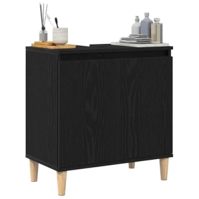 vidaXL Sink Cabinet Black Oak Bathroom Storage Engineered Wood, Matte Finish, 2 Doors, Rectangular, Easy Maintenance