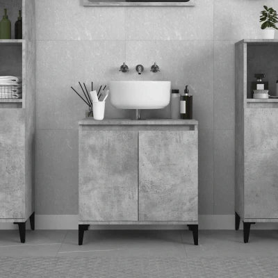 General description This sink cabinet is a great addition to your bathroom, providing a tidy and striking appearance. Made from high-quality engineered wood, it features a smooth surface that is durable, stable, and resistant to moisture. The cabinet is easy to clean and offers ample storage space with a large compartment for your bathroom essentials. Technical specifications Colour: Concrete grey Material: Engineered wood, metal Dimensions: 58 x 33 x 60 cm (W x D x H) Assembly required: Yes Usage The top of the cabinet is ideal for placing a sink, while the practical doors keep your essentials free from dust. The wooden feet ensure sturdiness and stability, making it a reliable choice for your bathroom. Other information The sink is not included in the delivery. To prevent it from being overturned, this product must be used with the provided wall attachment device.