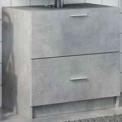 ManoManoGeneral description This sink cabinet is a stylish and practical addition to your bathroom, providing a tidy and striking appearance. It features a smooth surface and is made from high-quality engineered wood, ensuring durability and resistance to moisture. Technical specifications Colour: Concrete grey Material: Engineered wood Dimensions: 59 x 37 x 59 cm (W x D x H) Maximum load capacity (total): 30 kg Assembly required: Yes Installation To prevent tipping, this product must be used with the provided wall attachment device. Usage The under sink cabinet includes 1 drawer and 1 compartment, offering ample storage space for organizing daily essentials. The top of the cabinet is designed for placing the sink. Other information