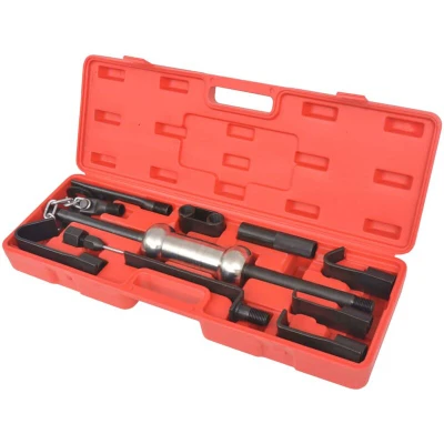 General description This heavy-duty slide hammer dent puller is ideal for auto body repairs, making it suitable for both industrial use and DIY projects. The set includes 10 assorted adapters and attachments, such as hooks, a lever, and a chain, all crafted from hardened drop-forged steel. The solid steel shaft features knurled handles for a secure grip, ensuring effective dent removal from your vehicle's body. Additionally, the set comes complete with a plastic case for organized storage. Technical specifications Hammer: yes Universal set: yes Transport case: yes Assorted adapters and attachments: 10 pcs SKU: 210019 Other information