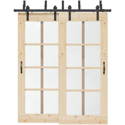 ManoManoGeneral description The Sliding Door Hardware Kit is designed for easy installation of dual tracks, allowing a pair of doors to slide in front of and behind each other. This kit is perfect for creating a stylish and functional space-saving solution in your home. Technical specifications Colour: Black Material: Powder-coated steel Maximum load capacity: 80 kg Sliding rail total length: 183 cm Suitable door size: 91.5 cm in width, 35-45 mm in thickness Barn door bypass bracket dimensions: 4 x 23 cm (W x H) Inner spacing: 8 cm Compatible barn door rail size: 40 x 6 mm (W x T) Installation This sliding door hardware set can be easily installed on the barn door using the included mounting accessories, making the installation process straightforward. Usage The barn door bracket kit allows for one door to slide over another, making it ideal for various applications such as: Closets Pantries Multiple openings on the same wall Other information Delivery includes: 4 x Sliding rail, 4 x Door