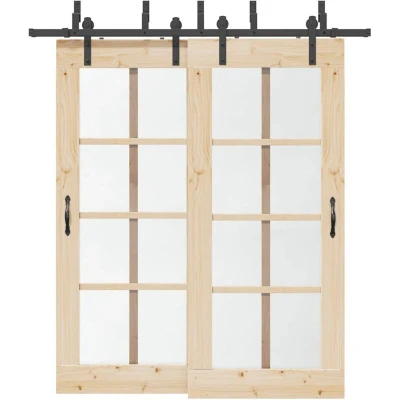 ManoManoGeneral description The Sliding Door Hardware Kit 200 cm in black steel allows for the seamless installation of dual tracks, enabling a pair of doors to slide in front of and behind each other. This kit is perfect for creating space-saving solutions in your home. Technical specifications Colour: Black Material: Powder-coated steel Maximum load capacity: 80 kg Sliding rail total length: 200 cm Suitable door size: 100 cm in width, 35-45 mm in thickness Barn door bypass bracket dimensions: 4 x 23 cm (W x H) Inner spacing: 8 cm Compatible barn door rail size: 40 x 6 mm (W x T) Installation This sliding door hardware set can be easily installed on the barn door using the included mounting accessories, making the installation process straightforward. Usage The barn door bypass bracket kit allows two barn doors to slide independently on two tracks, making it ideal for various applications such as: Closets Pantries Multiple openings on the same wall Other information Delivery includes: 4 x