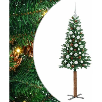 vidaXL Slim Christmas Tree Green 150 cm PVC and Solid Pine wood
