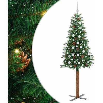 vidaXL Slim Christmas Tree Green 210 cm PVC and Solid Pine wood