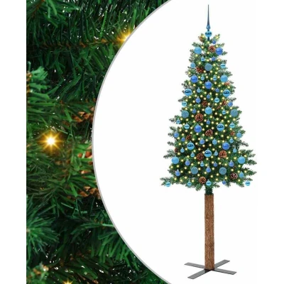 vidaXL Slim Christmas Tree Green 210 cm PVC and Solid Pine wood