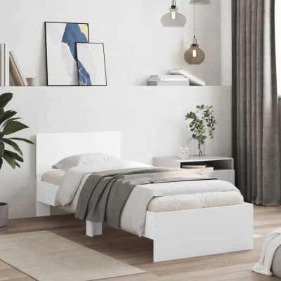 vidaXL Small Single Bed Frame with Headboard Engineered Wood, White, 75x190 cm, Modern Bedroom Furniture, Plywood Slats