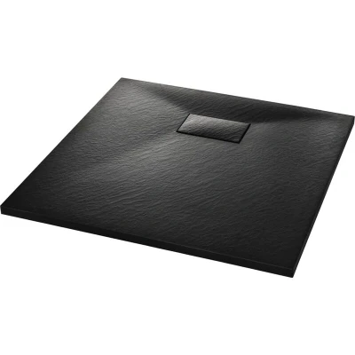 Featuring a modern, low-profile, as well as a clean look, this shower tray will add a great addition to your bathroom! The bathroom base is characterized by a low threshold for easy entry and exit. The hard-wearing SMC shower base is also reinforced for durability. Thanks to the slate stone surface design, the shower receptor is skid resistant. Additionally, our scratch- and stain- resistant SMC shower tray will withstand years of use. The bathroom tray is easy to clean. Colour: Black Material: SMC (Sheet Moulding Compound) with resin, fiberglass and stone powder Dimensions: 90 x 90 x 2.6 cm (W x D x T) Floor drain size: 20 x 12.5 cm (W x D) Low threshold Standard dia. 9 cm drain opening (drain not included) Easy to clean Long-term product that does not deform Maximum stability thanks to good shock resistance SKU: 144779 Children should be supervised to ensure that they do not play with the appliance. Keep children away from the assembly area. Attention: Reading the instructions