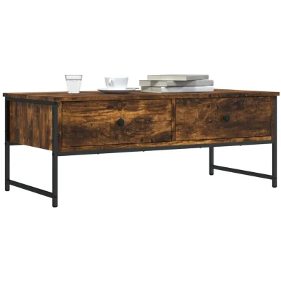 vidaXL Smoked Oak Coffee Table with Two Drawers Stylish Industrial Style Engineered Wood/Metal Living Room Furniture