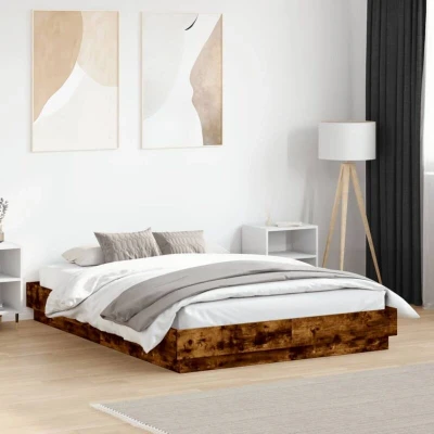 vidaXL Smoked Oak Engineered Wood Bed Frame Sturdy Plywood Slats, Moisture Resistant, Modern Small Double Size 120x190 cm