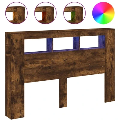 vidaXL Smoked Oak LED Headboard Engineered Wood Bed Header Adjustable RGB Lighting Modern Design Ideal for Reading and Watching TV in