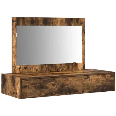vidaXL Smoked Oak Vanity Table Solid Wood, Large Mirror & Drawer Bedroom Dressing
