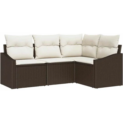 vidaXL Sofa Set with Cushion 4 pcs Brown Poly Rattan