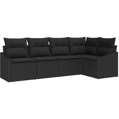 vidaXL Sofa Set with Cushion 5 pcs Black Poly Rattan