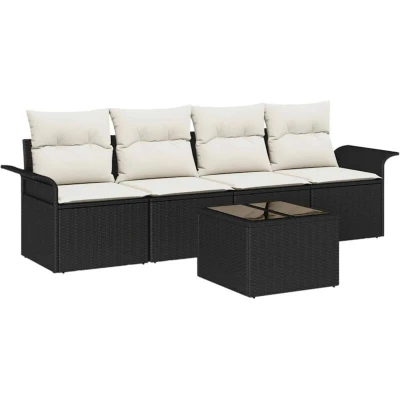 vidaXL Sofa Set with Cushion 5 pcs Black Poly Rattan