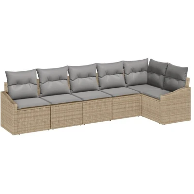 vidaXL Sofa Set with Cushion 6 pcs Beige Poly Rattan