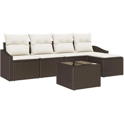 vidaXL Sofa Set with Cushion 6 pcs Brown Poly Rattan