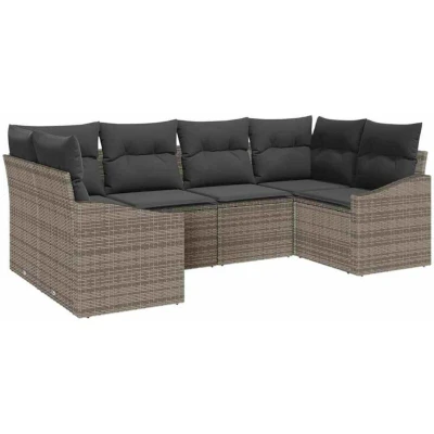 vidaXL Sofa Set with Cushion 6 pcs Grey Poly Rattan