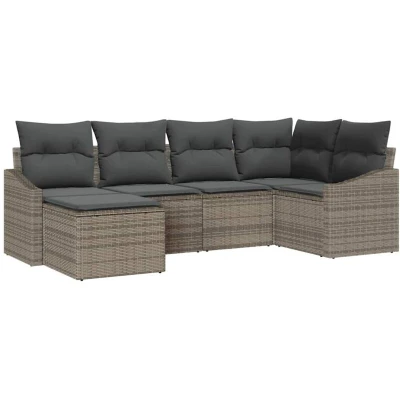 vidaXL Sofa Set with Cushion 6 pcs Grey Poly Rattan