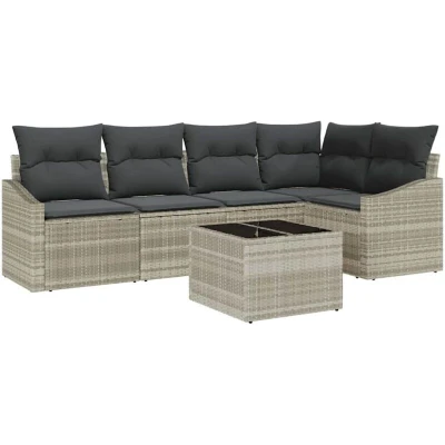 vidaXL Sofa Set with Cushion 6 pcs Light grey Poly Rattan