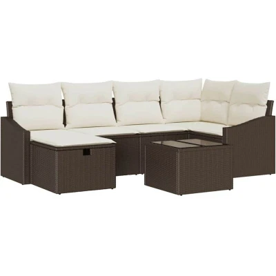 vidaXL Sofa Set with Cushion 7 pcs Brown and Cream Poly Rattan