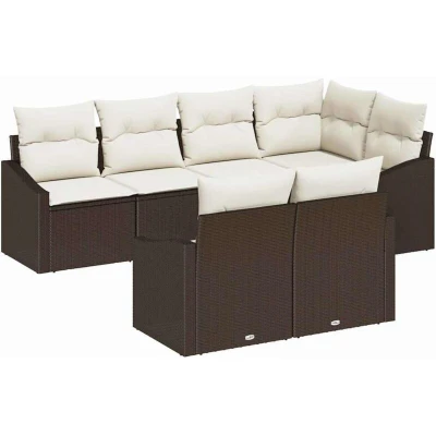 vidaXL Sofa Set with Cushion 7 pcs Brown Poly Rattan