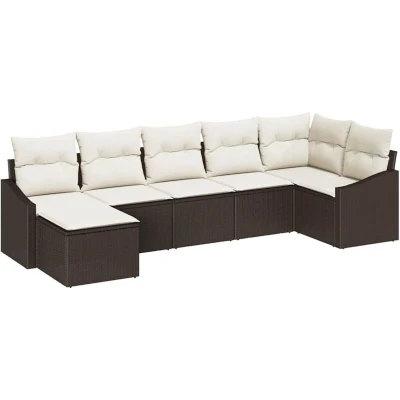 vidaXL Sofa Set with Cushion 7 pcs Brown Poly Rattan