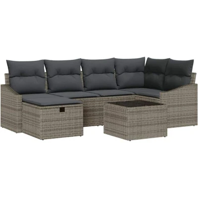 vidaXL Sofa Set with Cushion 7 pcs Poly Rattan