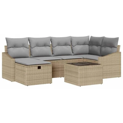 vidaXL Sofa Set with Cushion Beige and Light Grey Poly Rattan
