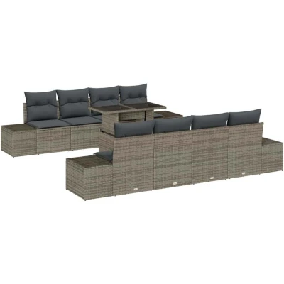 vidaXL Sofa Set with Cushion Height Adjustable 7 pcs Grey Poly Rattan