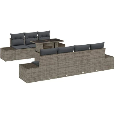vidaXL Sofa Set with Cushion Height Adjustable 8 pcs Grey Poly Rattan