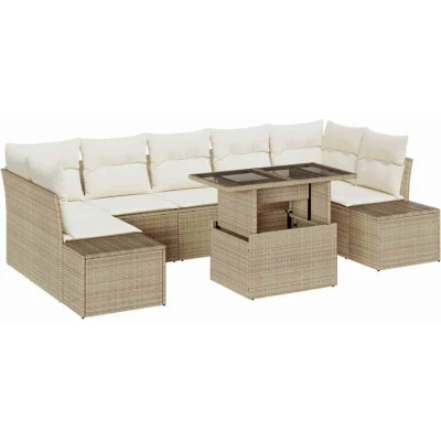 vidaXL Sofa Set with Cushion Manual 8 pcs Beige and Cream Poly Rattan