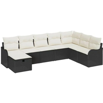 vidaXL Sofa Set with Cushion Manual 8 pcs Black and Cream Poly Rattan